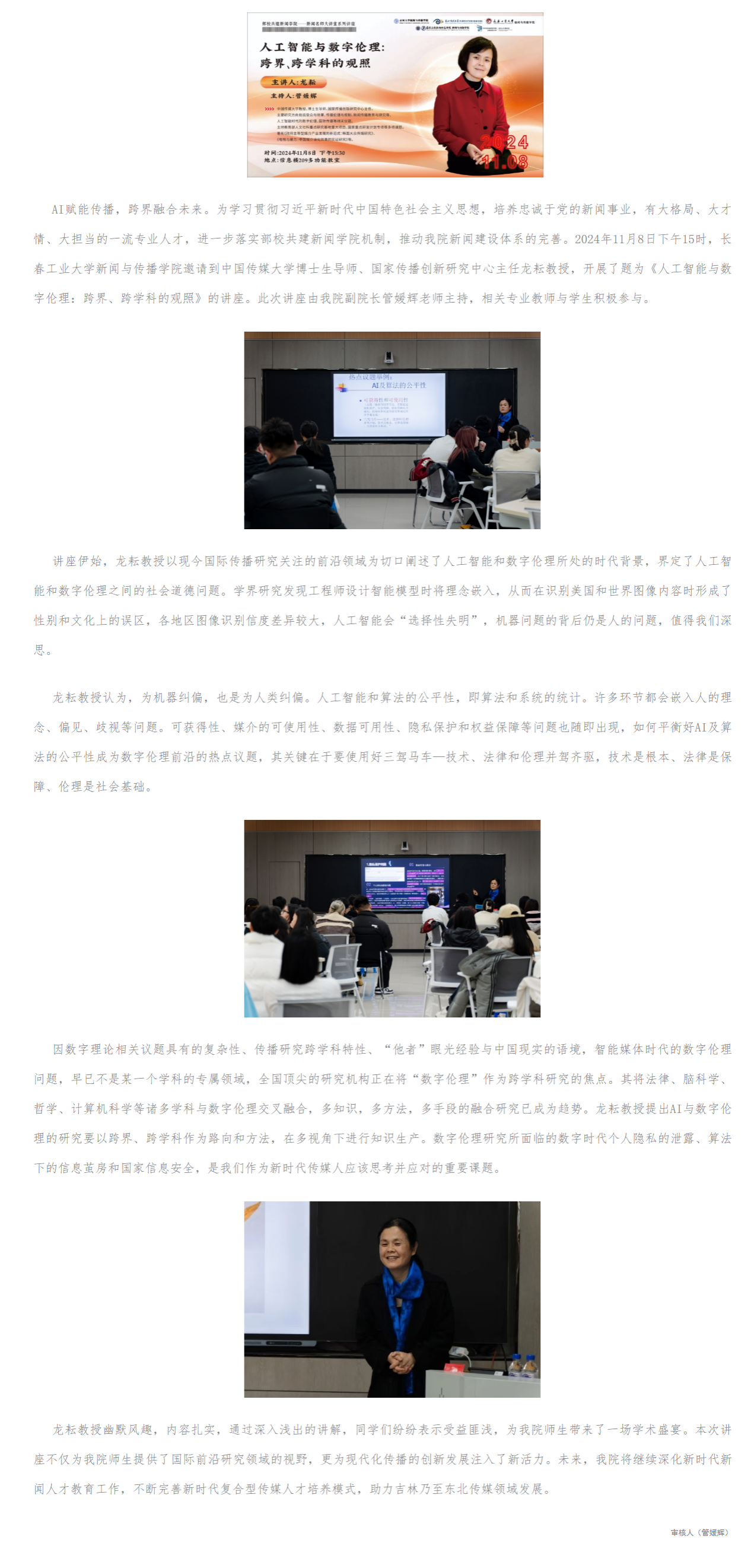 太阳成tyc7111cc集团部校共建新闻学院——新闻名师大讲堂系列讲座《人工智能与数字伦理:跨界、跨学科的观照》