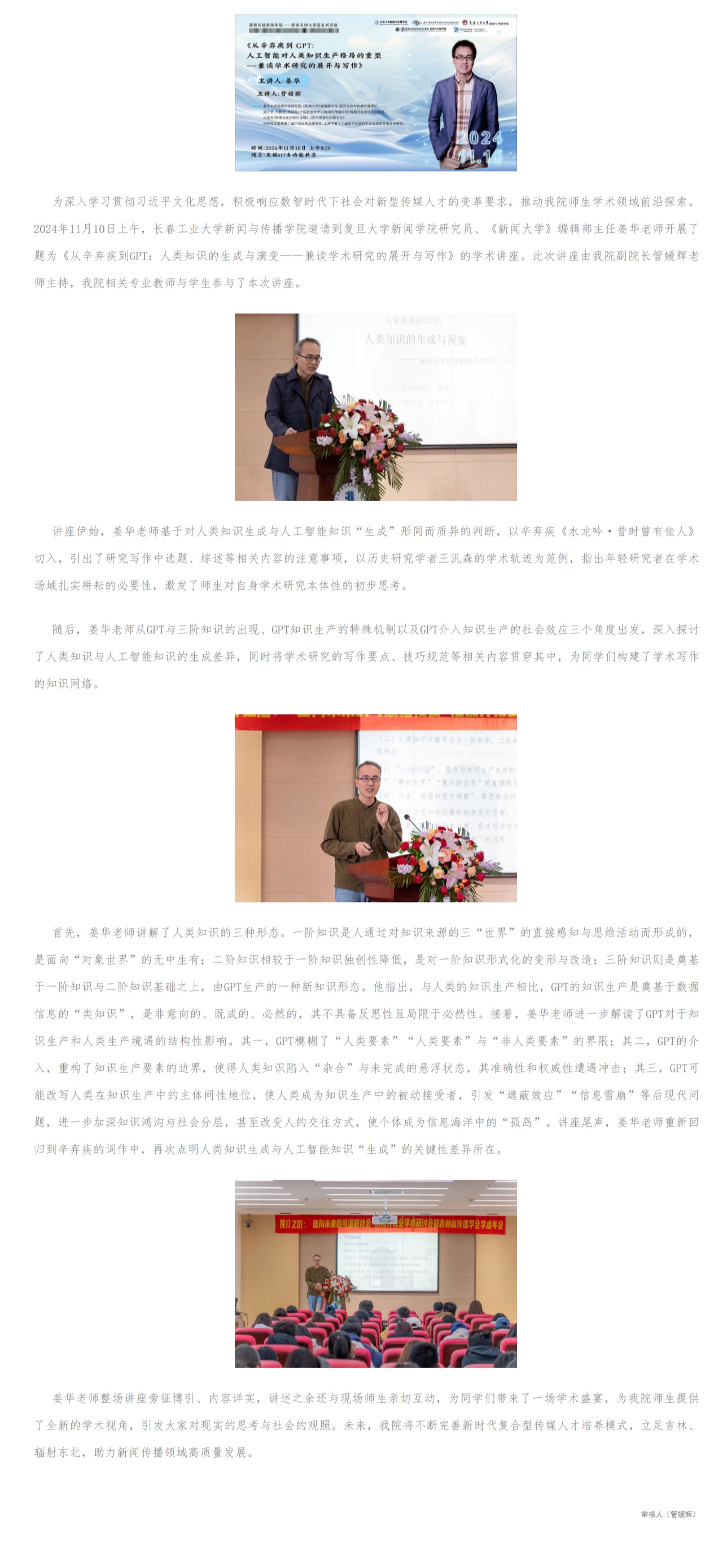 太阳成tyc7111cc集团 部校共建新闻学院——新闻名师大讲堂系列讲座《从辛弃疾到GPT:人类知识的生成与演变——兼谈学术研究的展开与写作》
