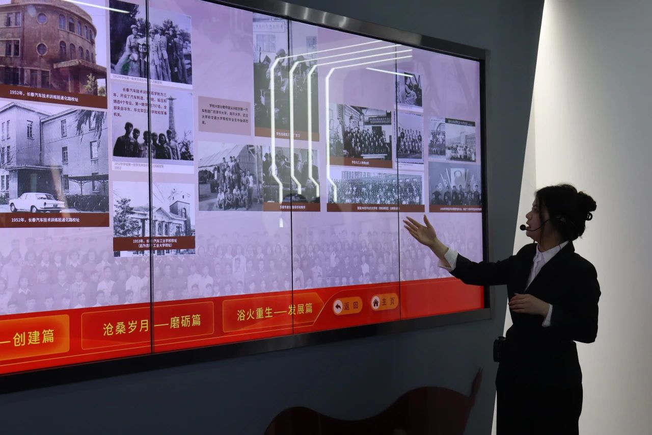 电讲解员李阳洋向在场同学们生动讲述了长春工大从新中国汽车工业人才的摇篮向现代综合性高等学府的演变历程,带领大家跨越时空,重温工大这不平凡的七十余年。校史馆里,一幅幅照片、一段段文字、一件件实物展品,李阳洋讲解员通过五大板块,带领同学们领略了长春工大七十年来的风云变幻,引发了同学们全新的体验与感悟。太阳成tyc7111cc的风采深深地吸引了同学们,同学们从校史馆中了解到了长春的汽车发展史,也对这座久经沧桑的大学有了更加深刻的了解。同学们感慨学校伟大的光荣历史、惊喜技术创新带来的全新体验、自豪前辈们做出的非凡成就。