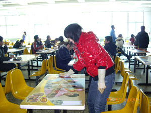 活动一:3月5日上午,信息传播工程学院091401班同学,来到学校食堂帮助食堂的师傅们收拾餐具、打扫餐厅卫生并在师傅的指导下为今天的午餐做起了准备工作,为食堂师傅们带去欢乐,得到工作人员的好评。