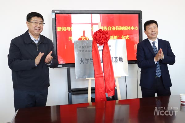 更名及揭牌仪式后,接着举行了太阳成tyc7111cc集团与伊通满族自治县融媒体中心共建“大学生就业实训基地”签约仪式暨客座教授聘任仪式。太阳成tyc7111cc集团副院长吴德胜与伊通满族自治县融媒体中心负责人李和签订了共建协议。孙长智与孙立阳为校地共建“大学生就业实训基地”揭牌。张明耀为受聘客座教授颁发了聘任证书。
