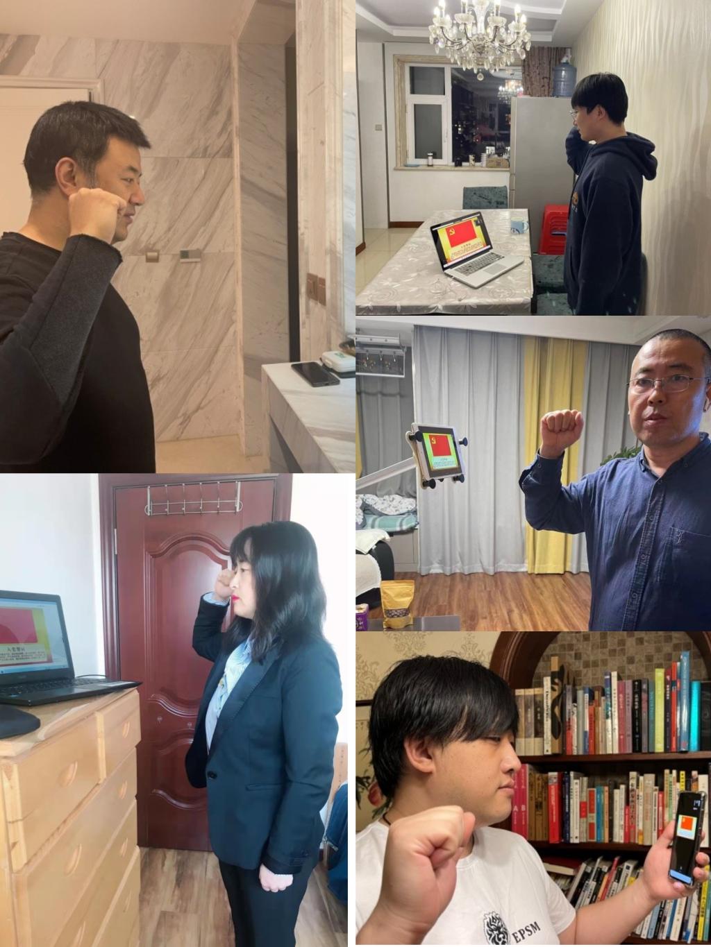在重温入党誓词环节,11位党员面对党旗,举起右手,庄严宣誓。在铮铮誓言中回想了入党时的激动和喜悦,感受了肩膀上沉甸甸的责任和使命,坚定了积极参与疫情防控工作,争当先锋,为党旗增光添彩的信心。