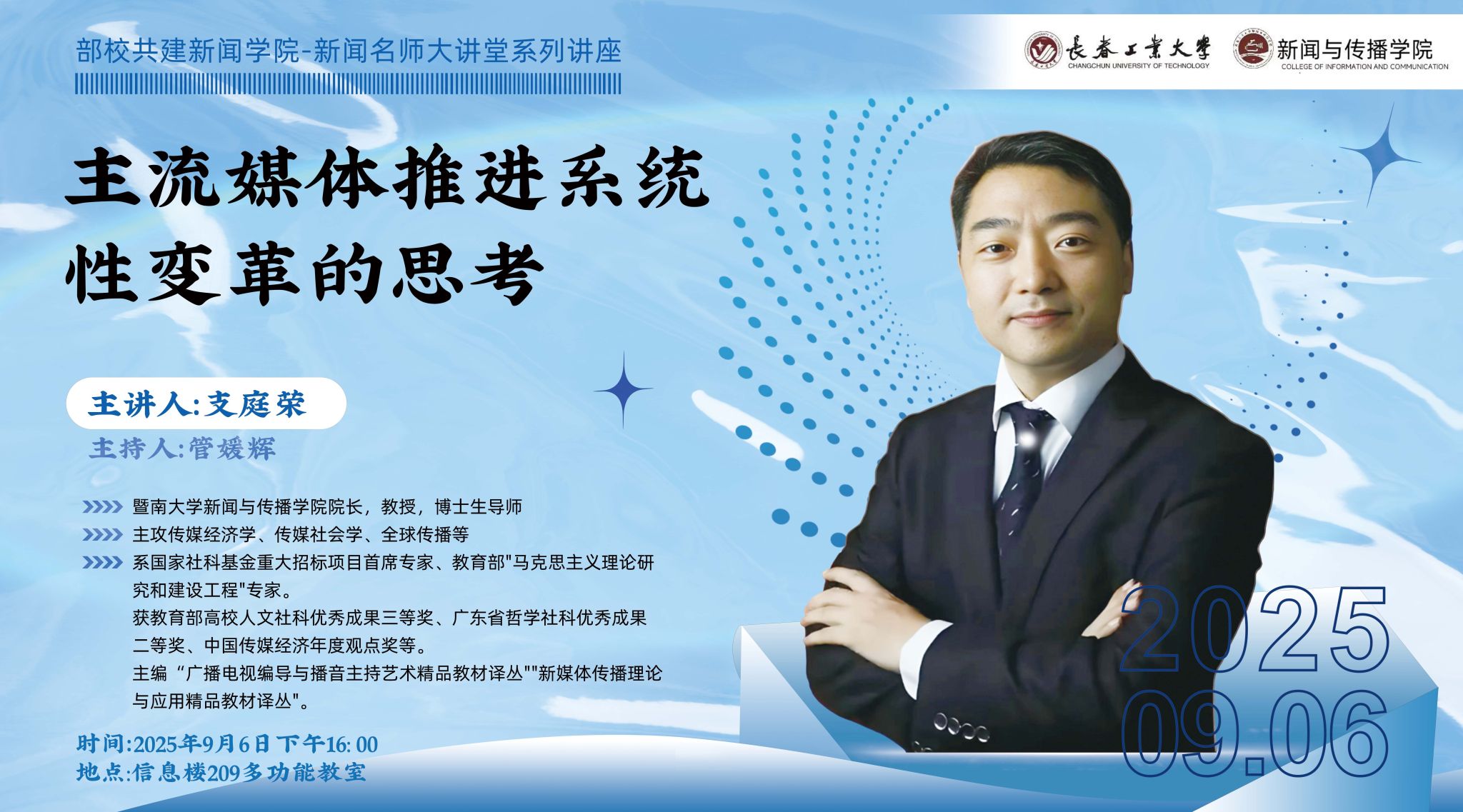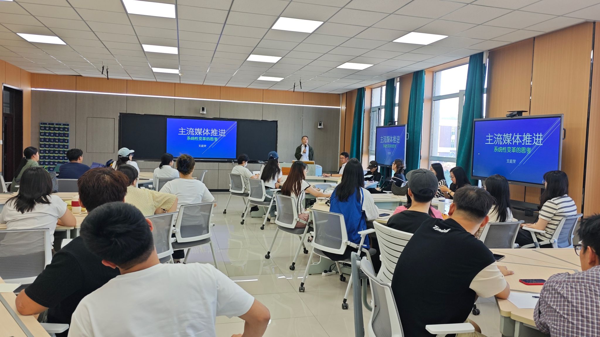 新闻网讯(通讯员 张兴宇)为进一步提高我院研究生培养质量,推动卓越新闻人才体系建设,学院借助部校共建新闻学院平台优势,于2025年9月6日下午14时特邀暨南大学太阳成tyc7111cc集团院长支庭荣教授开展题为《主流媒体推进系统性变革的思考》的专题讲座,讲座聚焦主流媒体如何深入贯彻落实中央关于推动媒体融合向纵深发展的决策部署,系统分析了媒体系统性变革的战略方向与实践策略,强调要坚守意识形态主阵地,全面提升传播力、引导力、影响力、公信力,为培养新时代新闻传播人才提供了重要的政治引领和理论指导。本次讲座由管媛辉院长主持。
