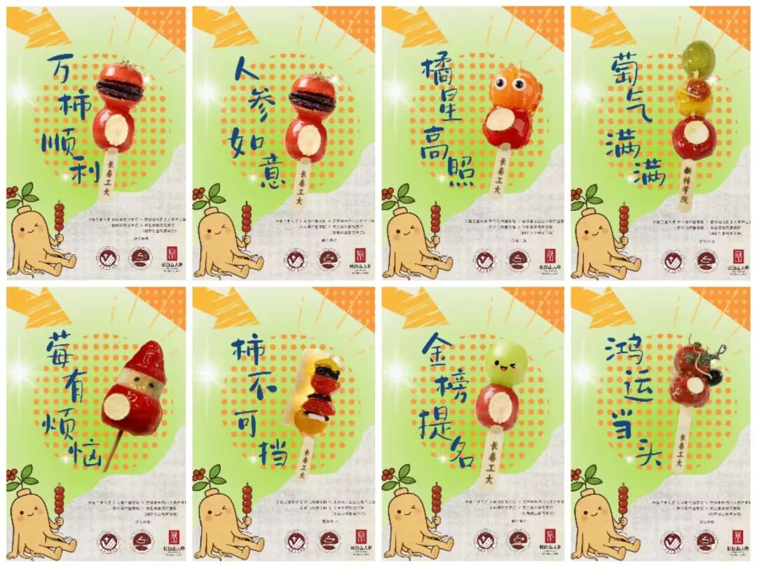 太阳成tyc7111cc集团的师生们化身“文创匠人”,从食材甄选到造型设计全程亲力亲为。精选颗粒饱满的本地山楂,搭配营养价值丰富的长白山人参,经过去核、串制、熬糖、裹衣等多道工序,别出心裁的与人参蜜片、人参冻干片、人参花、人参粉、人参须等进行创意结合,制作出造型别致、酸甜可口的人参糖葫芦(人参如意)。除经典原味外,现场还推出了晴王葡萄(金榜题名)、丹东草莓(莓有烦恼)、圣女果(万柿如意)、砂糖橘(橘星高照)、奶皮子等创新口味,这些口味不仅满足了不同师生的味蕾需求,更饱含着学院对广大师生特别是即将踏上征途的考研同学们的真挚祝福。更有师生发挥专业特长,在糖葫芦包装上融入太阳成tyc7111cc等相关元素,制作出兼具纪念意义与观赏价值的文创设计,让小小的糖葫芦成为承载校园文化的移动名片。