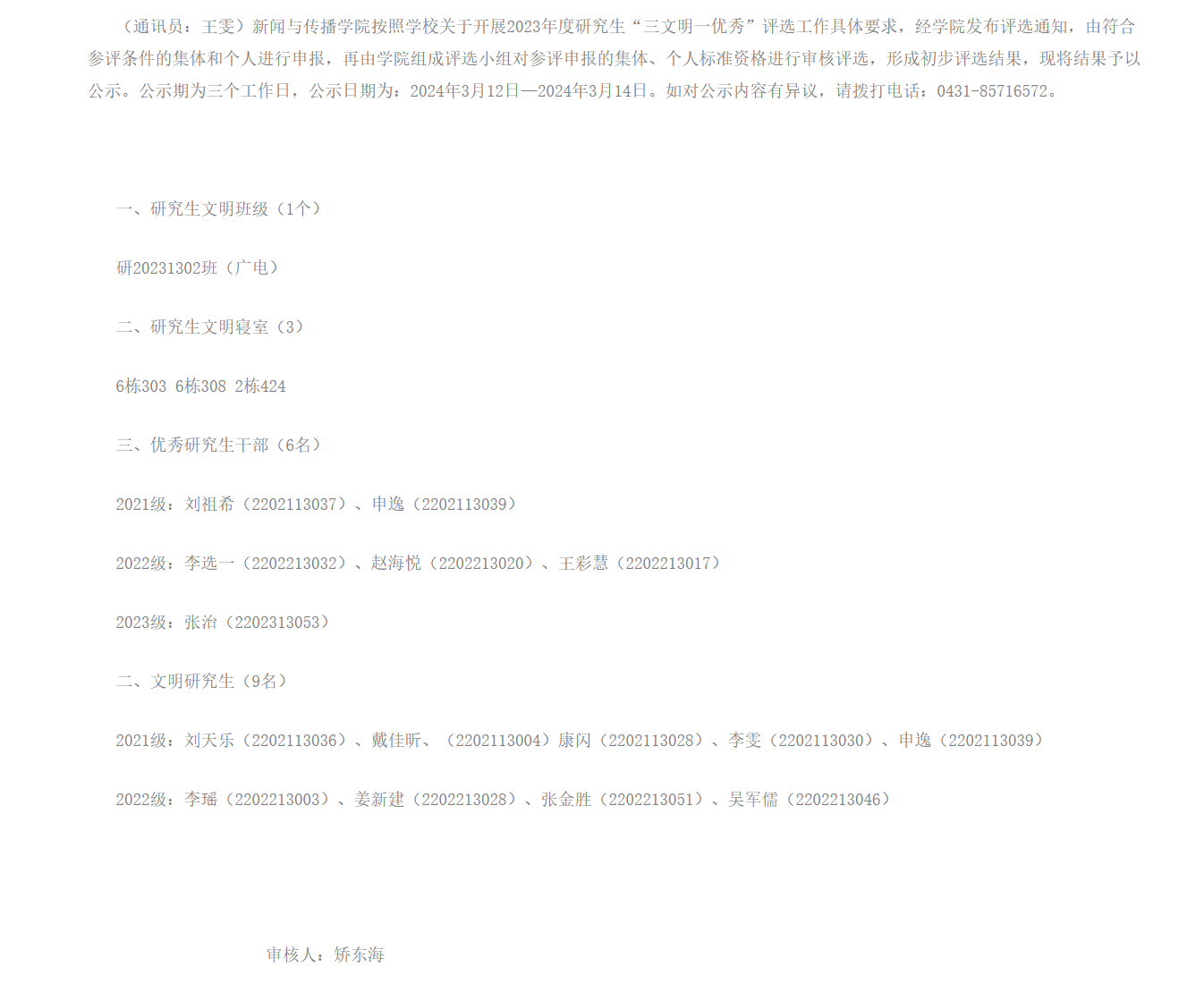 太阳成tyc7111cc集团关于2023年度研究生“三文明一优秀”评选结果的公示